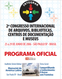 Diagnóstico dos primeiros Arquivos Eclesiásticos Brasileiros Voltar Metadados Miniatura Compartilhe TítuloDiagnóstico dos primeiros Arquivos Eclesiásticos BrasileirosAutor(es)SANTOS, Cristian José Oliveira dosRelacionado à Obra 2º Congresso Internacional de Arquivos, Bibliotecas, Centros de Documentação e Museus - INTEGRAR Organizador(es) Federação Brasileira de Associações de Bibliotecários, Cientistas da Informação e Instituições (FEBAB) Link do Livro http://febab.org.br/integrar/2_Integrar.htm SessãoTrabalhos Técnicos - Eixo Temático - Políticas e projetos de incentivo para repertórios institucionais/memóriaLocalBrasil > São PauloAno2006Link Principalhttp://febab.org.br/integrar/Programa%20Oficial.pdfObservaçõesApresentado no 2º Congresso Internacional de Arquivos, Bibliotecas, Centros de Documentação e Museus - INTEGRAR.CategoriaEventos Científicos Documentos Sem-titulo-2 Baixar Continuar navegando Entre a salvaguarda e a destruição: os arquivos italianos durante a Segunda Guerra Mundial (1942-1945) A teoria e a prática arquivística: como procedimentos fundamentais para alcançar uma gestão pública de qualidade Voltar para a lista de itens